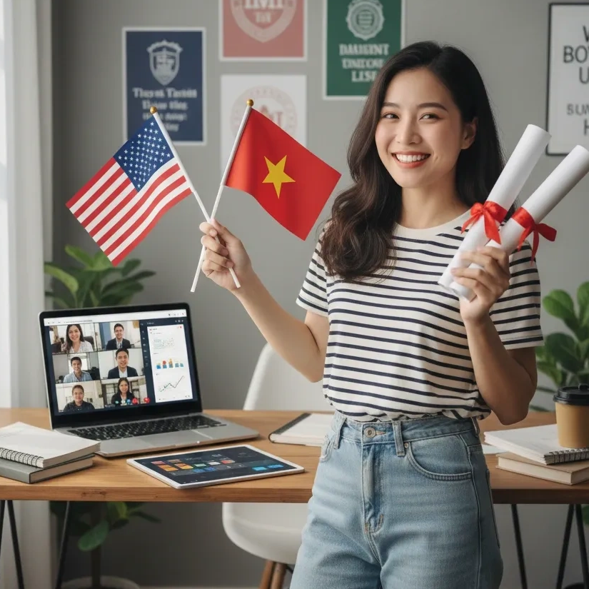 Bằng tốt nghiệp Việt Nam (tại trường học của học sinh) và bằng tốt nghiệp THPT Hoa Kỳ